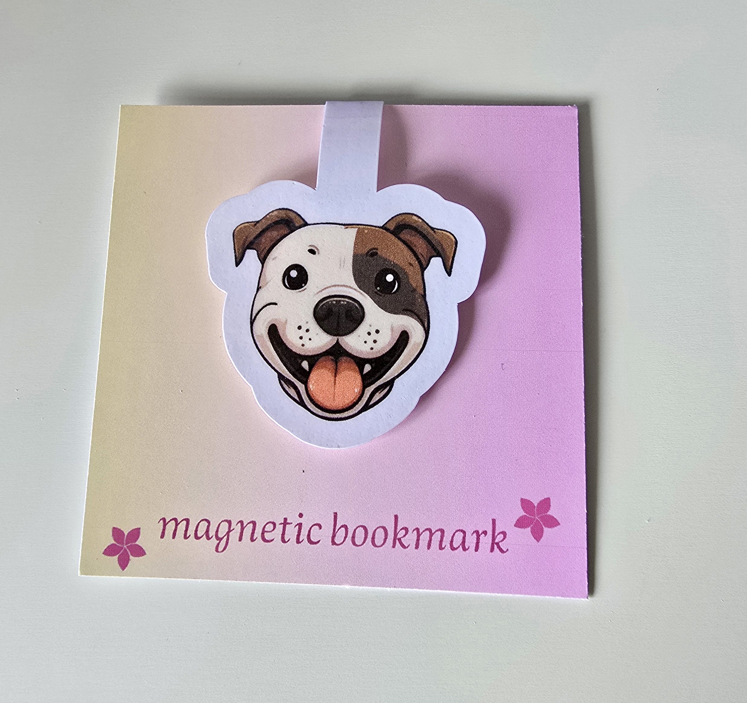 Get your cute staffy Magnetic Bookmark today to mark your page!
